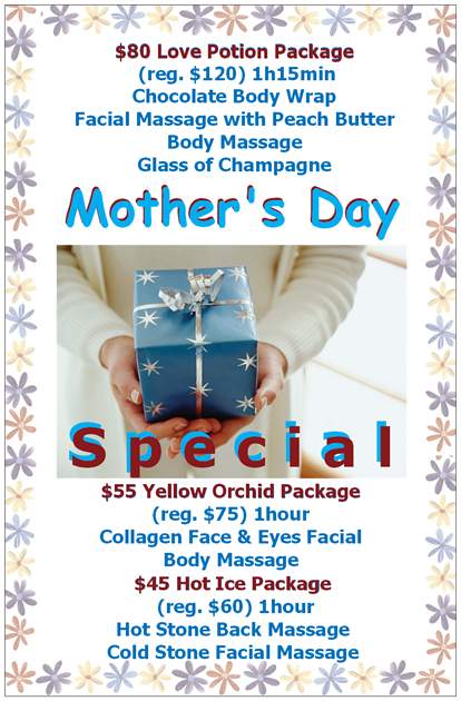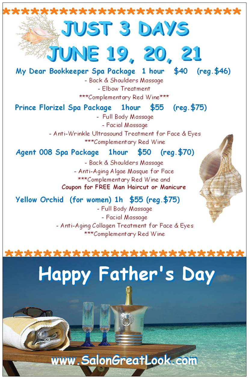 Serenity by the Sea Spa Package Approx. 1 h 20 min - European Manicure - Beauty Rush Facial Ocean View Spa Package Approx. 2 h - European Manicure - Pedicure - Milady Signature Facial My Beauty Day Spa Package Approx. 5 h - Full Body Massage - Full Body Polish - Hydrating Body Wrap - Milady Signature Facial - Moisturizing Hand Treatment - European Manicure - Hair Wash & Style - Complementary Herbal Tea - Complementary Snack White Sand Spa Package Approx. 1.5 h - European Manicure - Back Massage - Milady Signature Facial Milady Signature Spa Package Approx. 3 h - Spa-manicure - Spa-pedicure - Back massage - Beauty Rush Facial